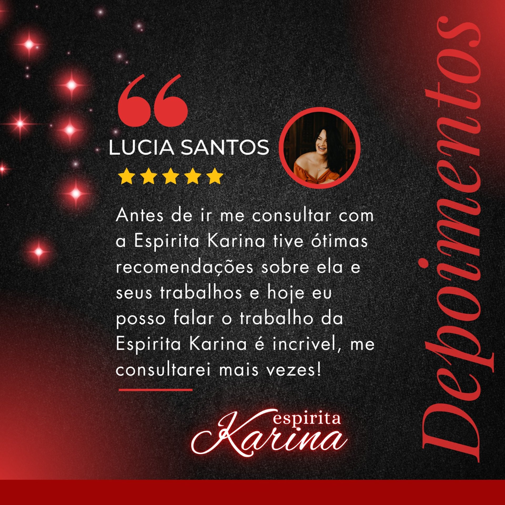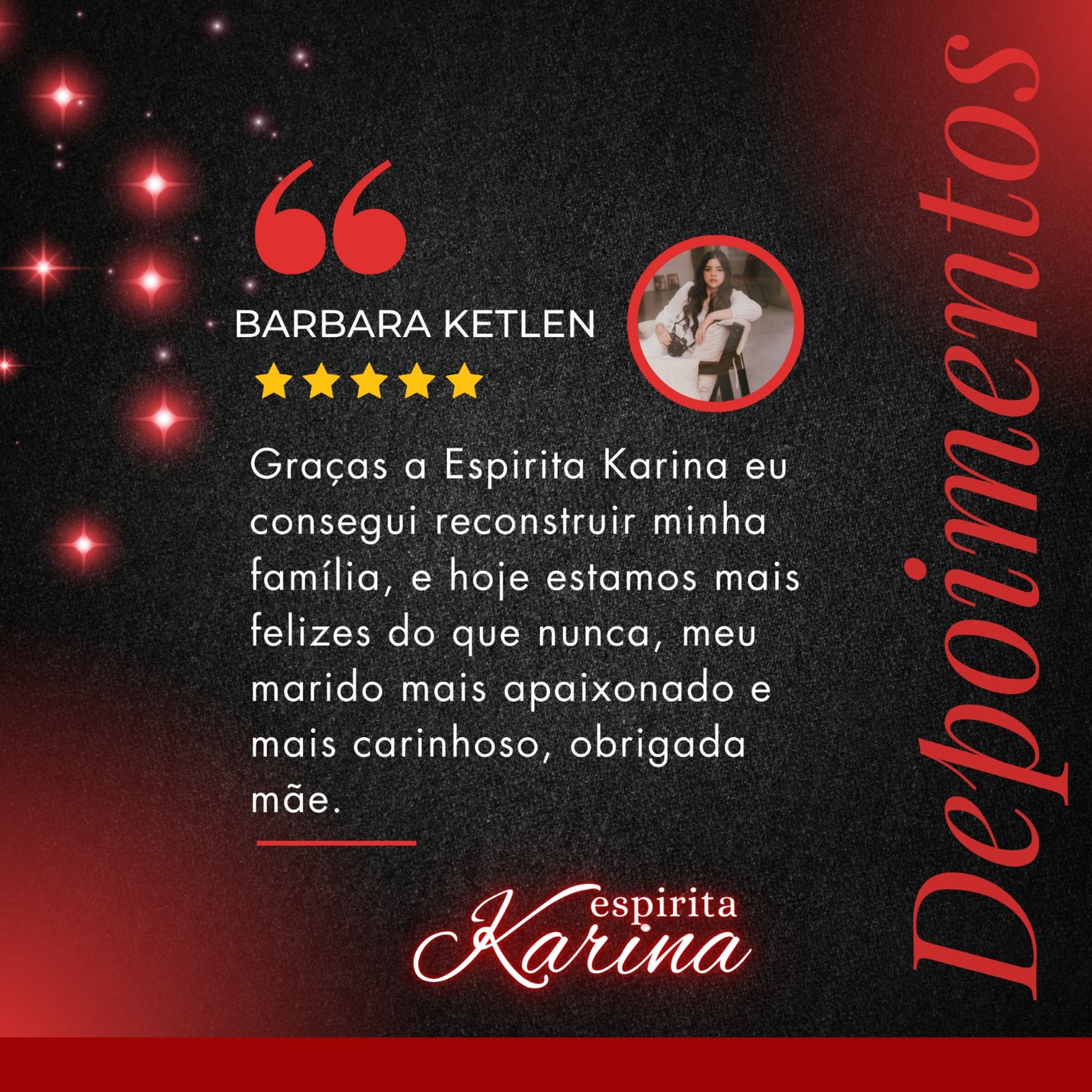 Especialista em Amarração Amorosa, Limpeza de Corpo e Tarot. Consultas online com Espirita karina. Afastamento de rivais, adoçamento do amor e mais. Entre em contato agora!
